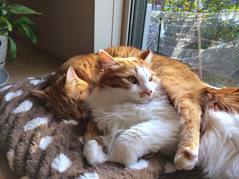 ちゃーの威嚇もなんのその、置物のようだった親分は、