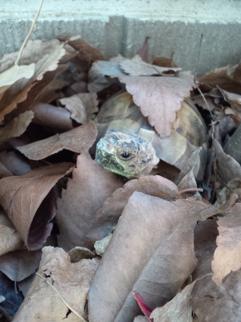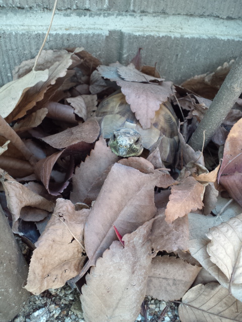 無有ちゃん、落ち葉のお布団は気持ち良いですか?