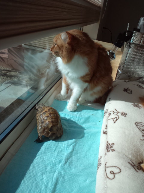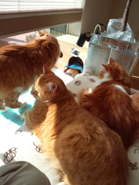 ぽかぽか優しい日差しに誘われて、窓際は大混雑。