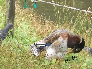 突然照りつけ始めたお日様の下、濡れた羽毛のお手入れに余念のない