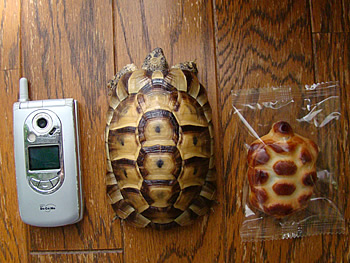 亀まんじゅうと無有、そして、G太さんが使っていた携帯を並べて
