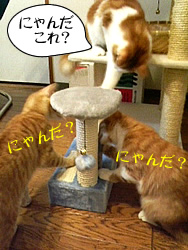 我が家の猫ズにと、ミニキャットタワーが贈られてきました。