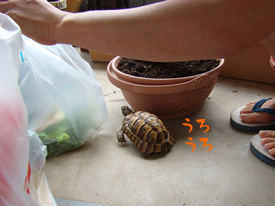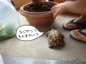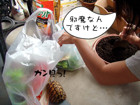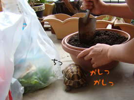 まるで腹いせ?のように、鉢にガシガシあたりながら、