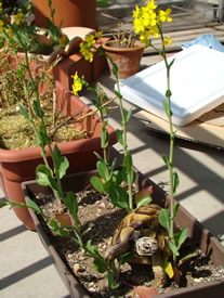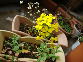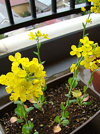 このところ、ベランダでは無有菜園の小松菜が次々に花を咲かせ、
