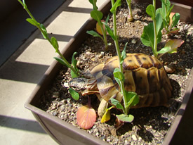 隣の鉢はカブの葉。