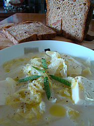 奥に見える楚々とした白い花はルッコラです。