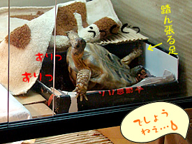 先日も、器用にちんげん菜だけをエサ皿に残したまま、