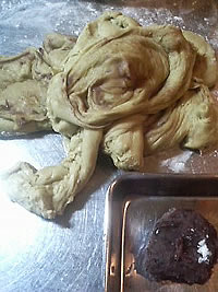 『こっちは今、抹茶あんパン(生地に抹茶を練りこんだ)を作ってるよ』