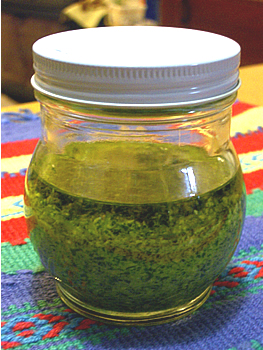 オリーブオイルを注ぎ、フタをして冷蔵庫に入れておけば、