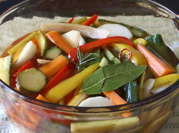 野菜をさっと湯通しして、一度煮立てたピクルス液